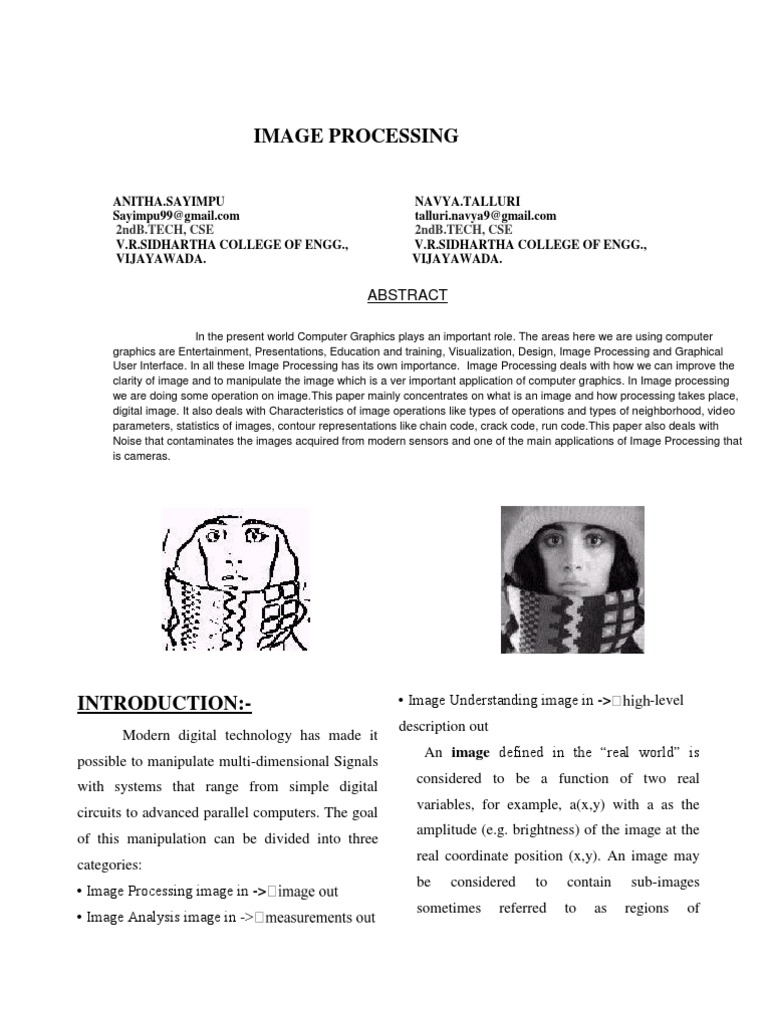 clarity of image and to manipulate the image which is a ver important application of computer graphics. In Image processing