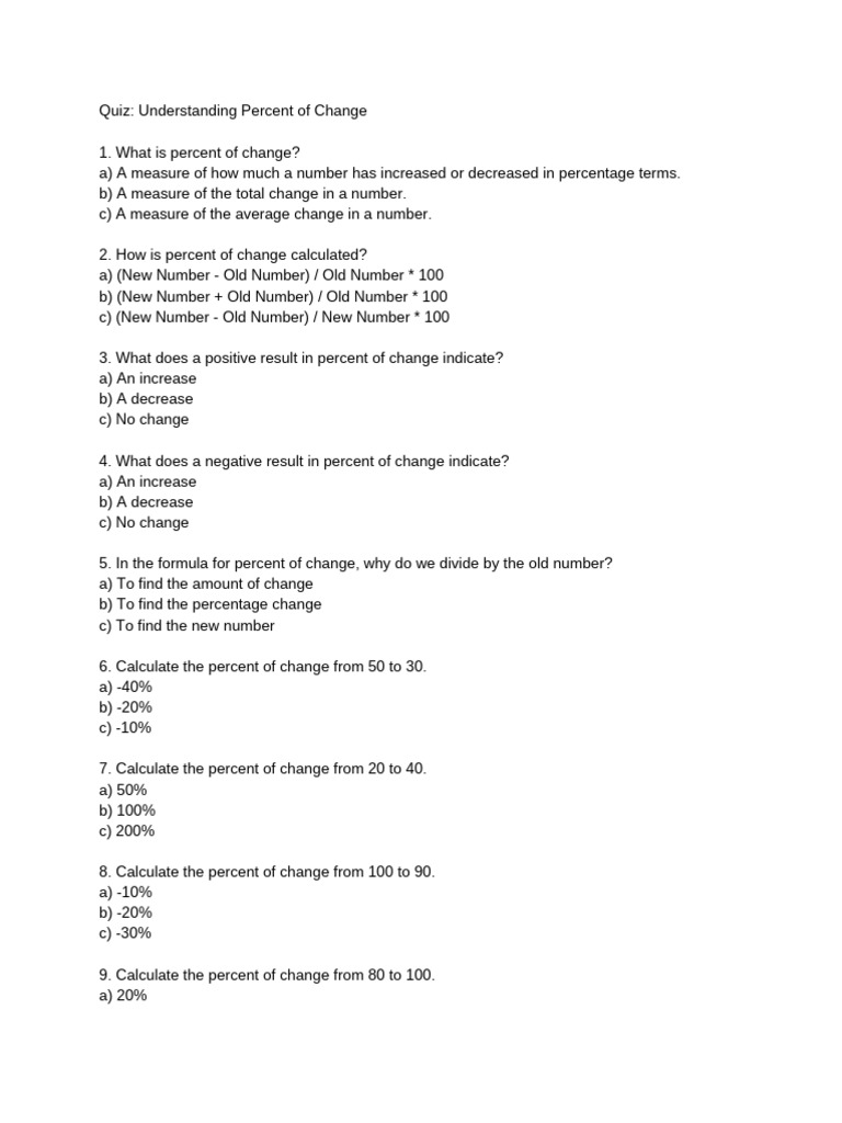 Quiz: Understanding Percent of Change