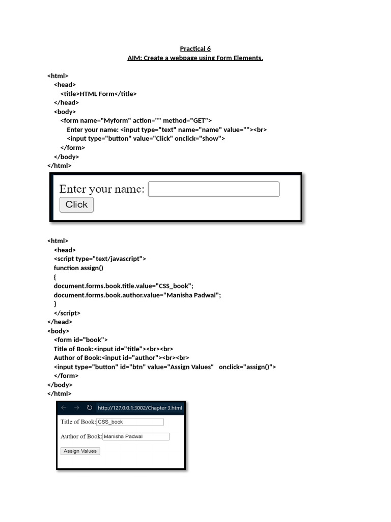 AIM: Create a webpage using Form Elements.