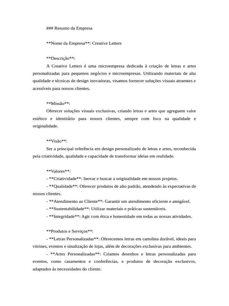 A Creative Letters é uma microempresa especializada na criação de letras e artes