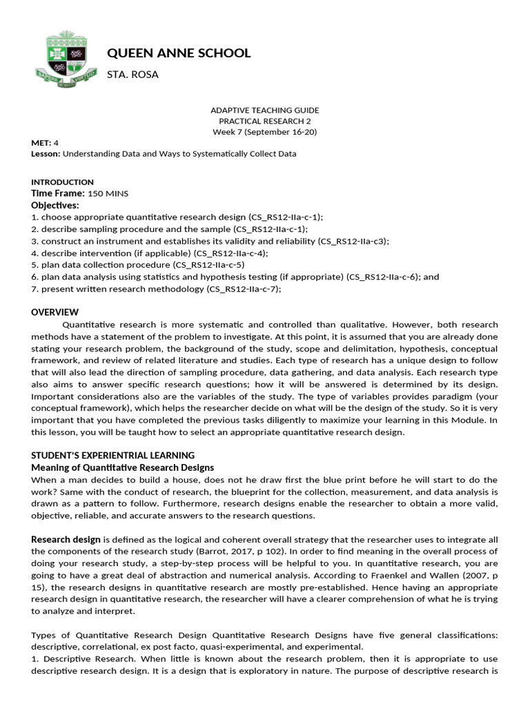 1. choose appropriate quantitative research design (CS_RS12-IIa-c-1);