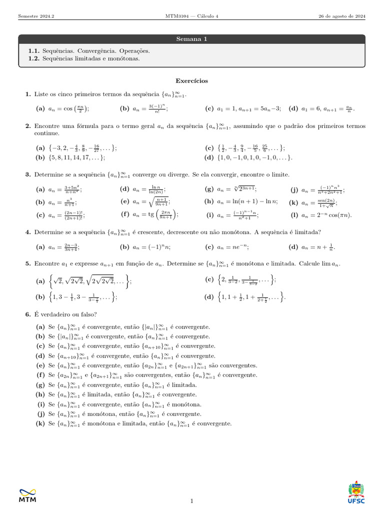 Semestre 2024.2 MTM3104 — Cálculo 4 26 de agosto de 2024