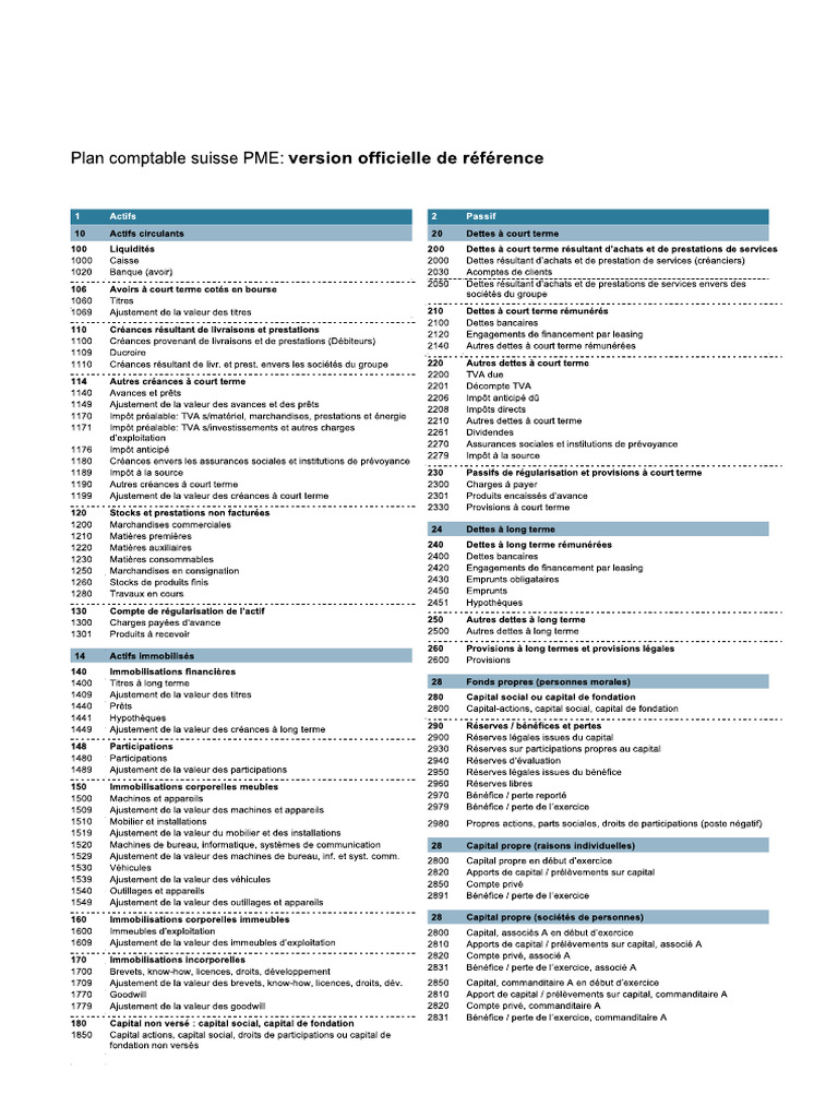 Plan comptable suisse PME: version officielle de référence