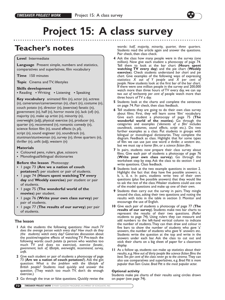 TIMESAVER PROJECT WORK Project 15: A class survey