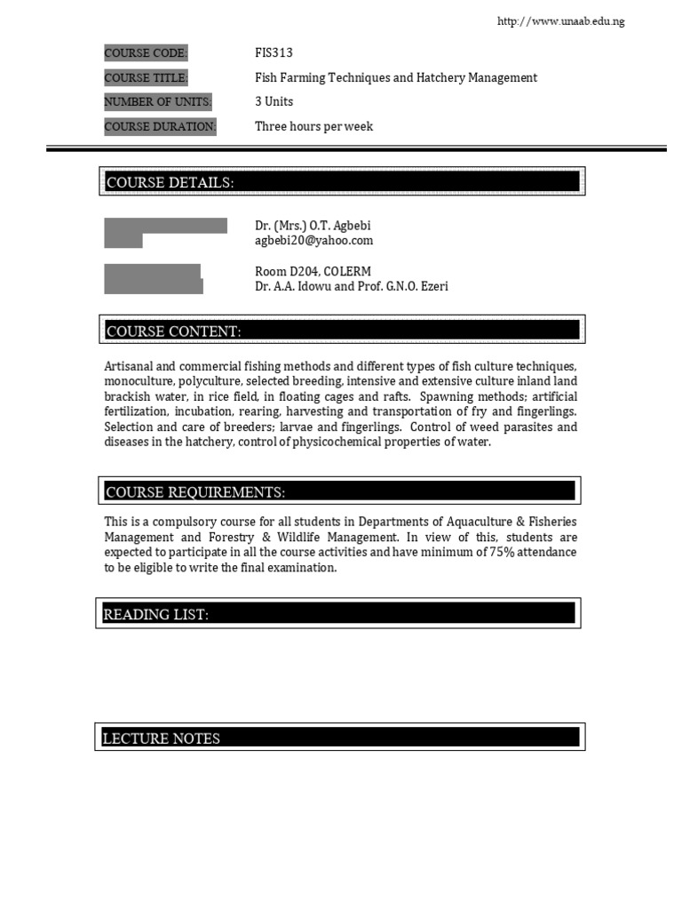 Other Lecturers: Dr. A.A. Idowu and Prof. G.N.O. Ezeri