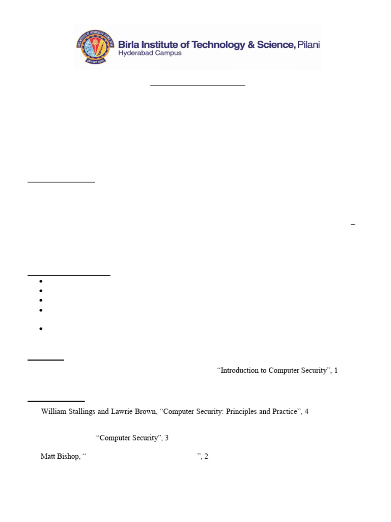 R1. William Stallings and Lawrie Brown, “Computer Security: Principles and Practice”, 4 th Edition, Pearson,
