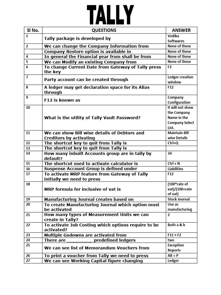 12 The shortcut key to quit from Tally is Ctrl+Q