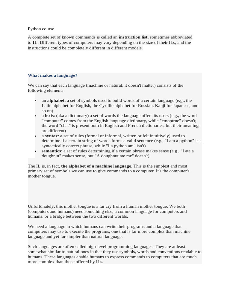 The IL is, in fact, the alphabet of a machine language. This is the simplest and most