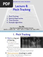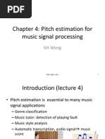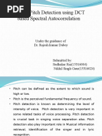 This produces two fractional pitch candidates and their corresponding normalized autocorrelation values. The higher result in one of these two candidates will be the fractional pitch , and the normalized autocorrelation will be , and he will be saved as . 2.2.2. VOICING ANALISYS In order to make an accurate voicing analysis we split the speech signal to five spectral bands. The algorithm combines two methods for this implementation: The first method is to apply the normalized autocorrelation function on every band. In this way we seek for maximum value of the autocorrelation and it tells us about the strength of the voice in that band. This method is good for frames that contain a stationary voice, but it is not good when the pitch is changing because the autocorrelation function will result in small values, and will not represent the voice itself.