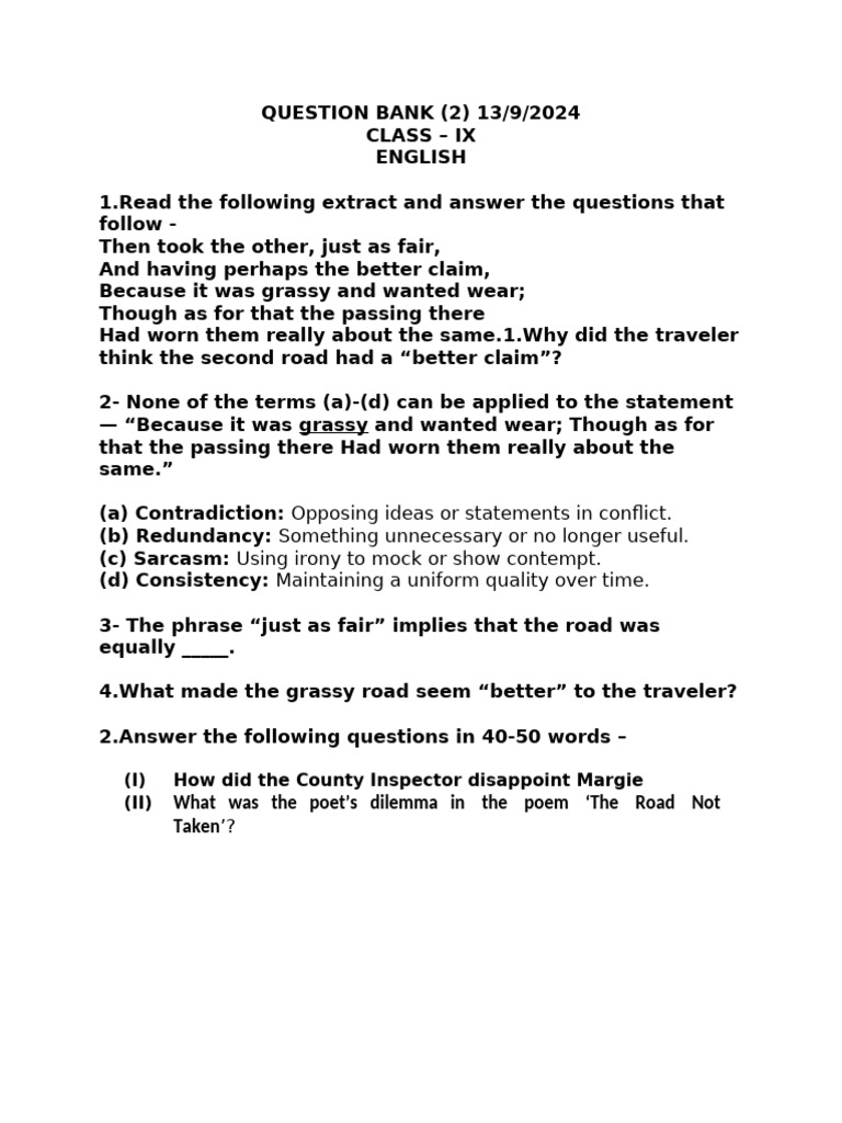(II) What was the poet’s dilemma in the poem ‘The Road Not