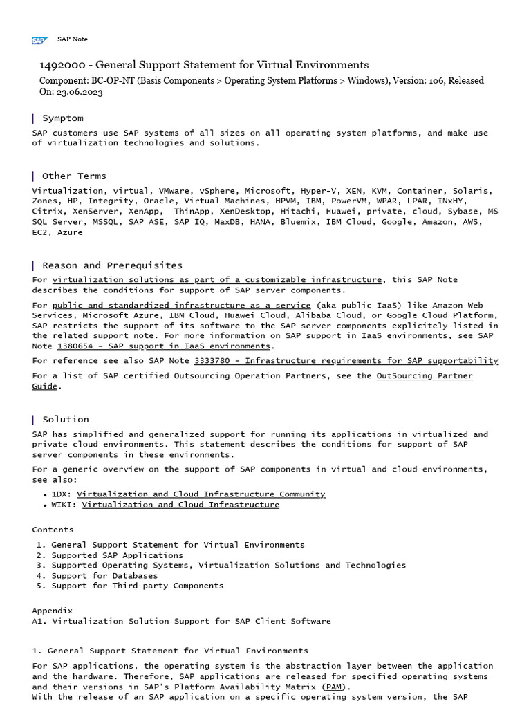 the related support note. For more information on SAP support in IaaS environments, see SAP