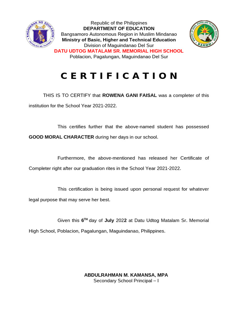 Given this 6TH day of July 2022 at Datu Udtog Matalam Sr. Memorial
