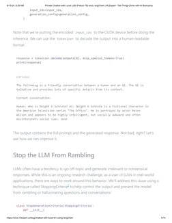 * Stopping criteria: detect start of LLM “rambling” and stop the generation