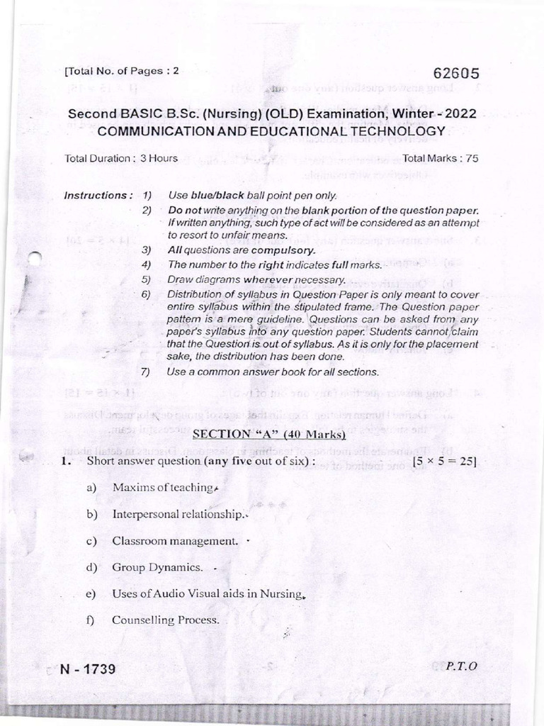 Second Basic B.Sc. Nursing Examination, (Phase - ll) Summer - 2022