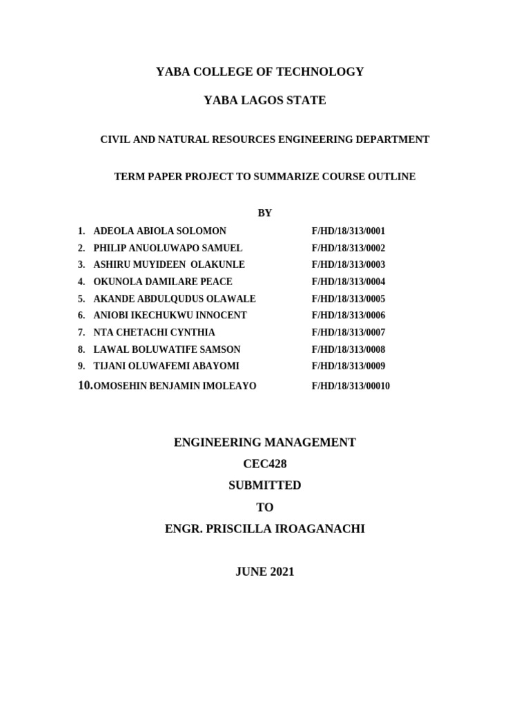 TERM PAPER PROJECT TO SUMMARIZE COURSE OUTLINE