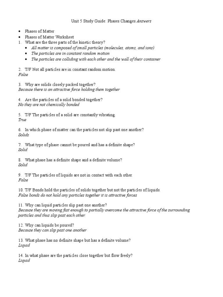 Unit 5 Study Guide: Phases Changes Answers