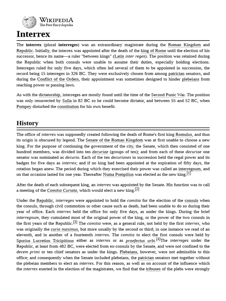 Drummond, Andrew (2015). "Interrex" (https://oxfordre.com/classics/view/10.1093/acrefore/9780199381