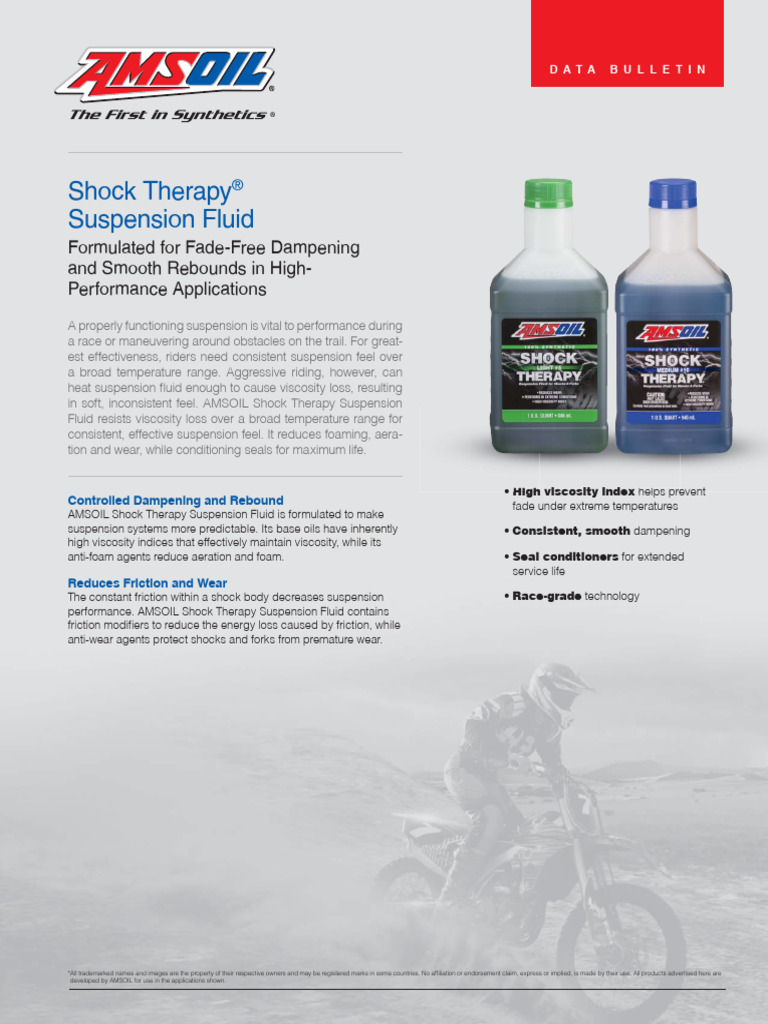 performance. AMSOIL Shock Therapy Suspension Fluid contains