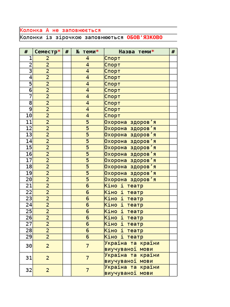 # Семестр* # № теми* Назва теми* #