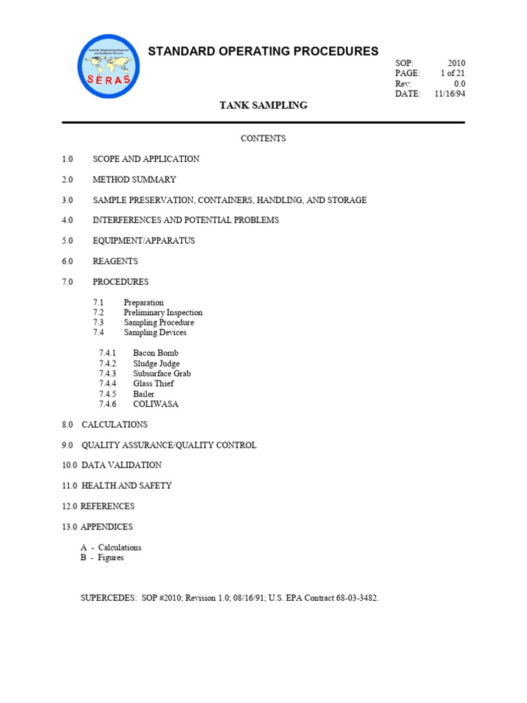 The purpose of this standard operating procedure (SOP) is to provide technical guidance for the