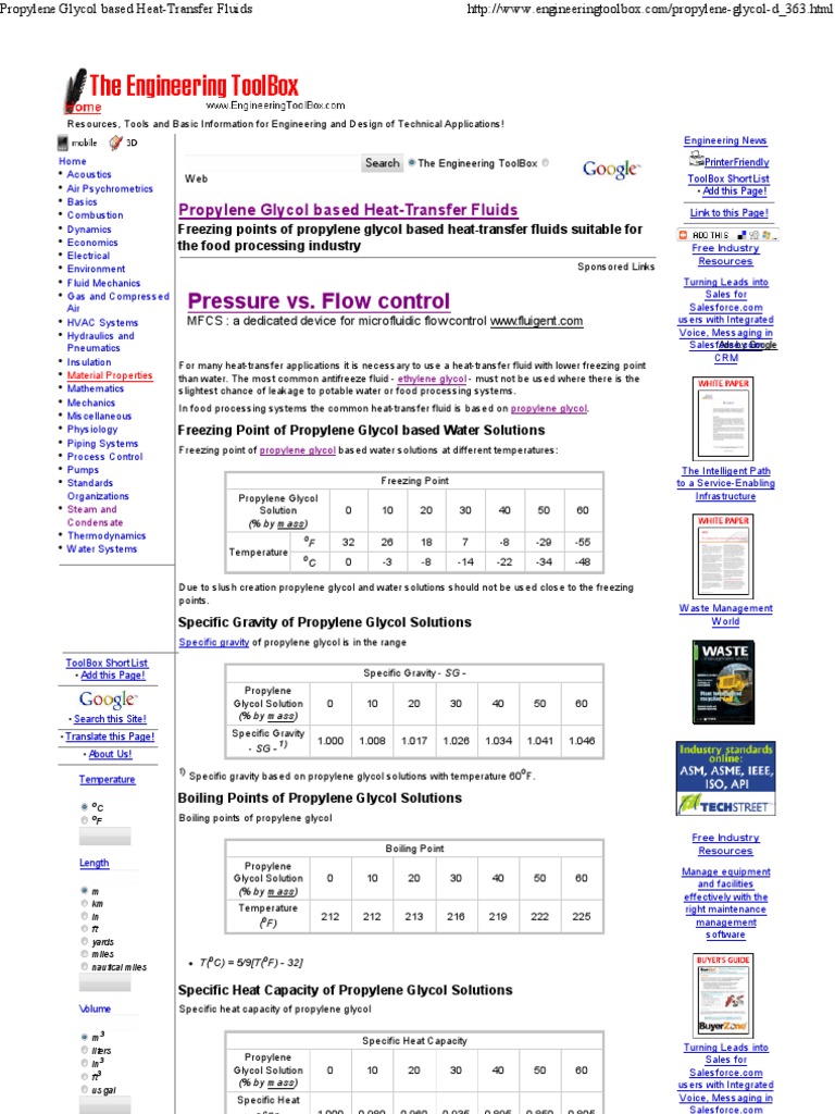 Propylene Glycol based Heat-Transfer Fluids
