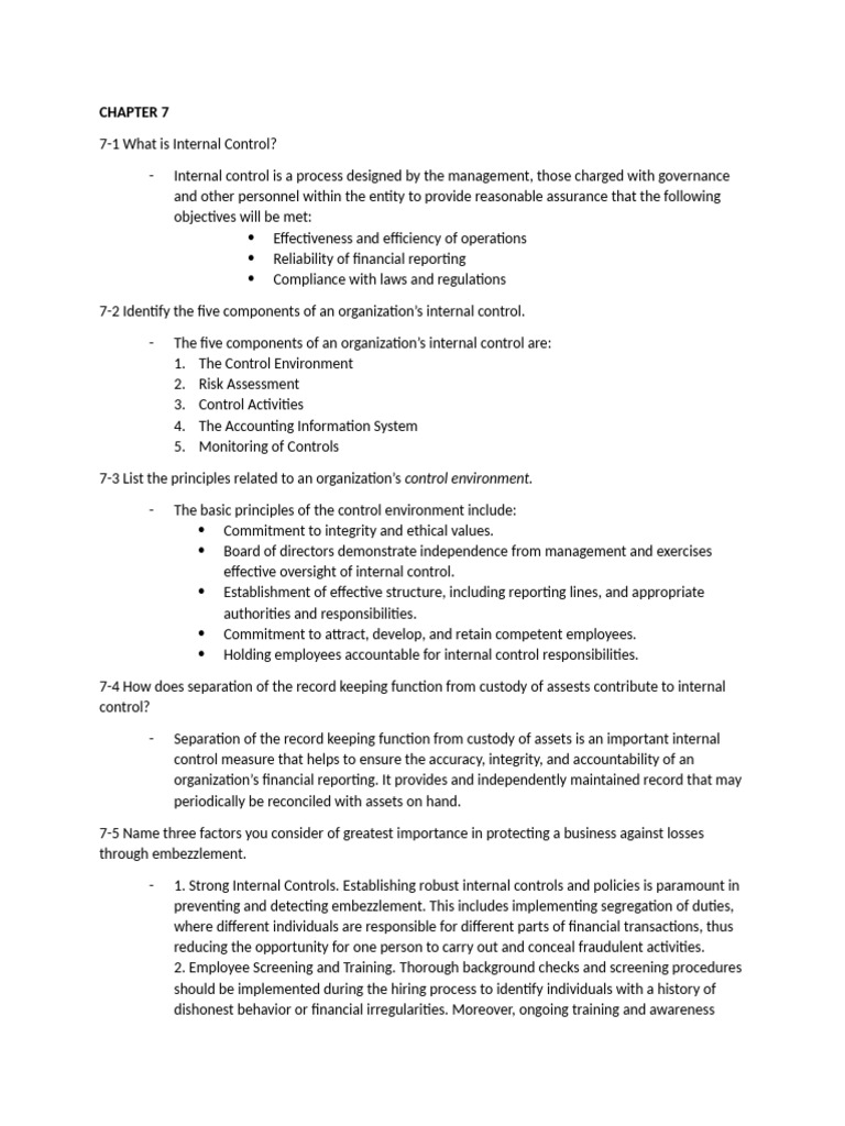 7-4 How does separation of the record keeping function from custody of assests contribute to internal