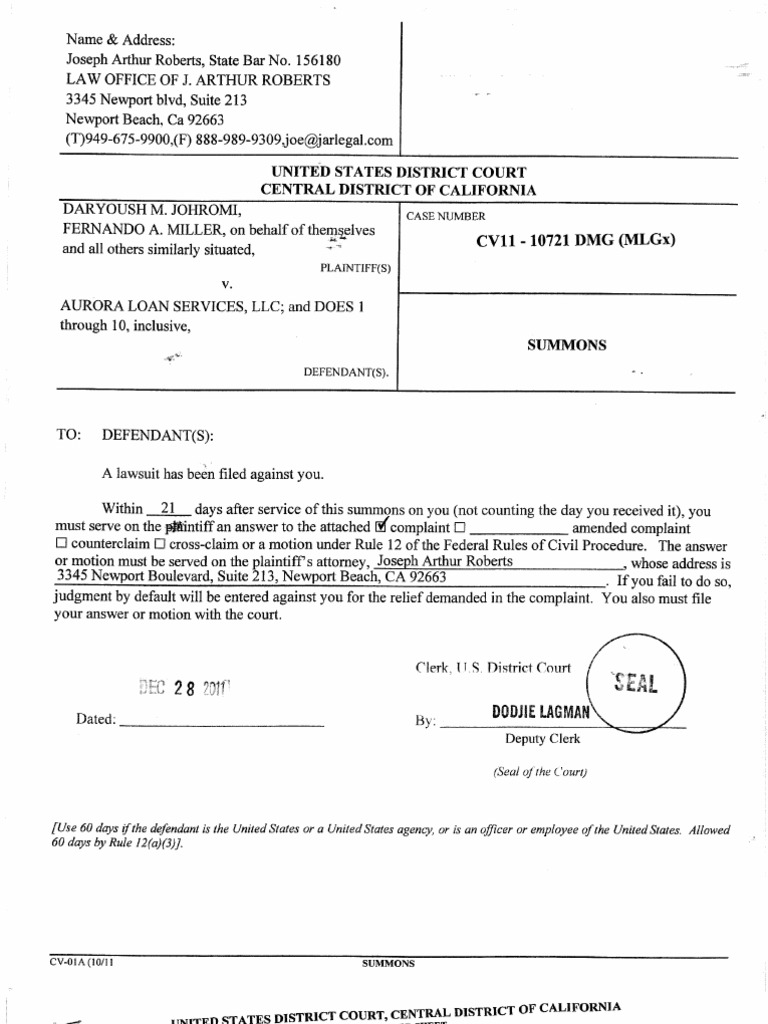 Class Action complaint claims that either AURORA is systemically violating TILA 131g or they are creating phony assignments to deceive judges, debtors and trustees and prevail in bankruptcy matters without cost or opposition.