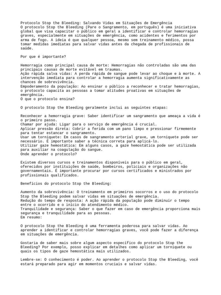 O protocolo Stop the Bleeding é uma ferramenta poderosa para salvar vidas. Ao