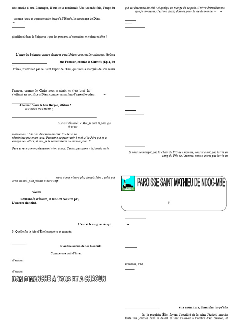 R/ Goûtez et voyez comme est bon le Seigneur ! Réf/ tu ngnit lô fa mba njon bew fa ma ghu la féa cuabé nsé mbé (bis) ma
