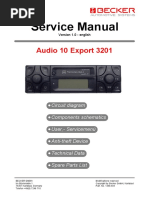 Turn radio ON Press and hold the button for about 8 seconds, until Becker 1 is displayed. Turn the Tuning Knob until AUX OFF is displayed. Press either button located directly under the Arrows on the display to change the present setting from OFF to ON. Turn radio OFF. Auxiliary Audio Input has now been activated.