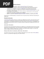a DHCP server also supports several methods for IP address allocation: automatic,