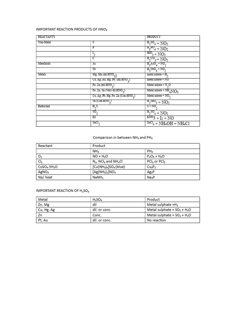 IMPORTANT REACTION PRODUCTS OF HNO3