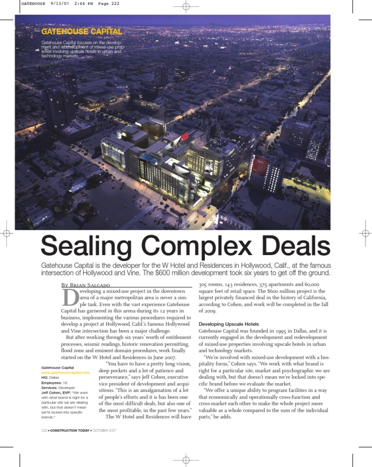 Gatehouse Capital is the developer for the W Hotel and Residences in Hollywood, Calif., at the famous