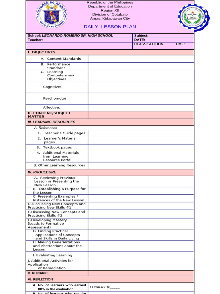 School: LEONARDO ROMERO SR. HIGH SCHOOL Subject: