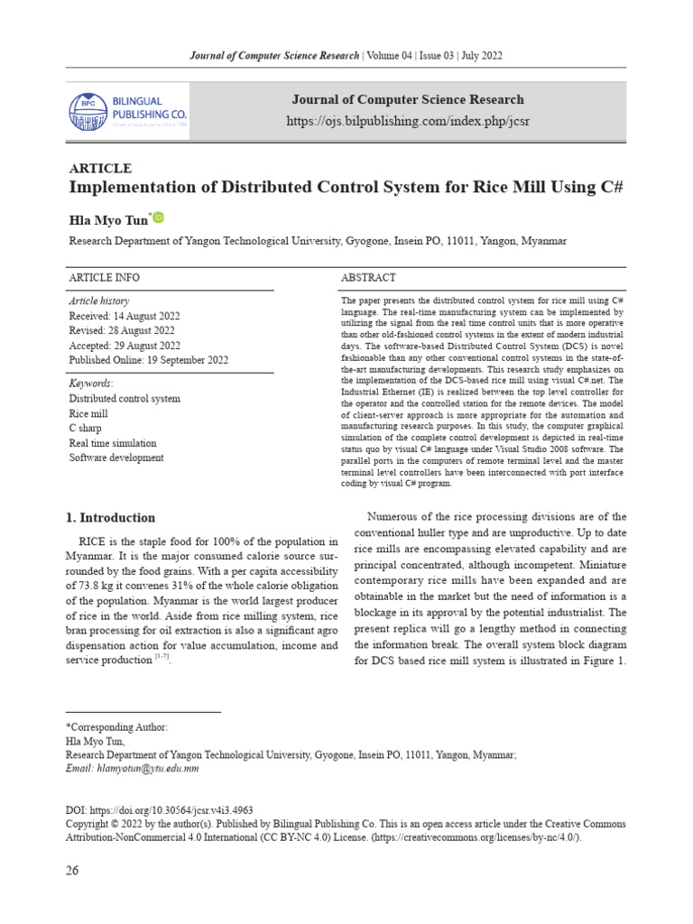 Keywords: the implementation of the DCS-based rice mill using visual C#.net. The