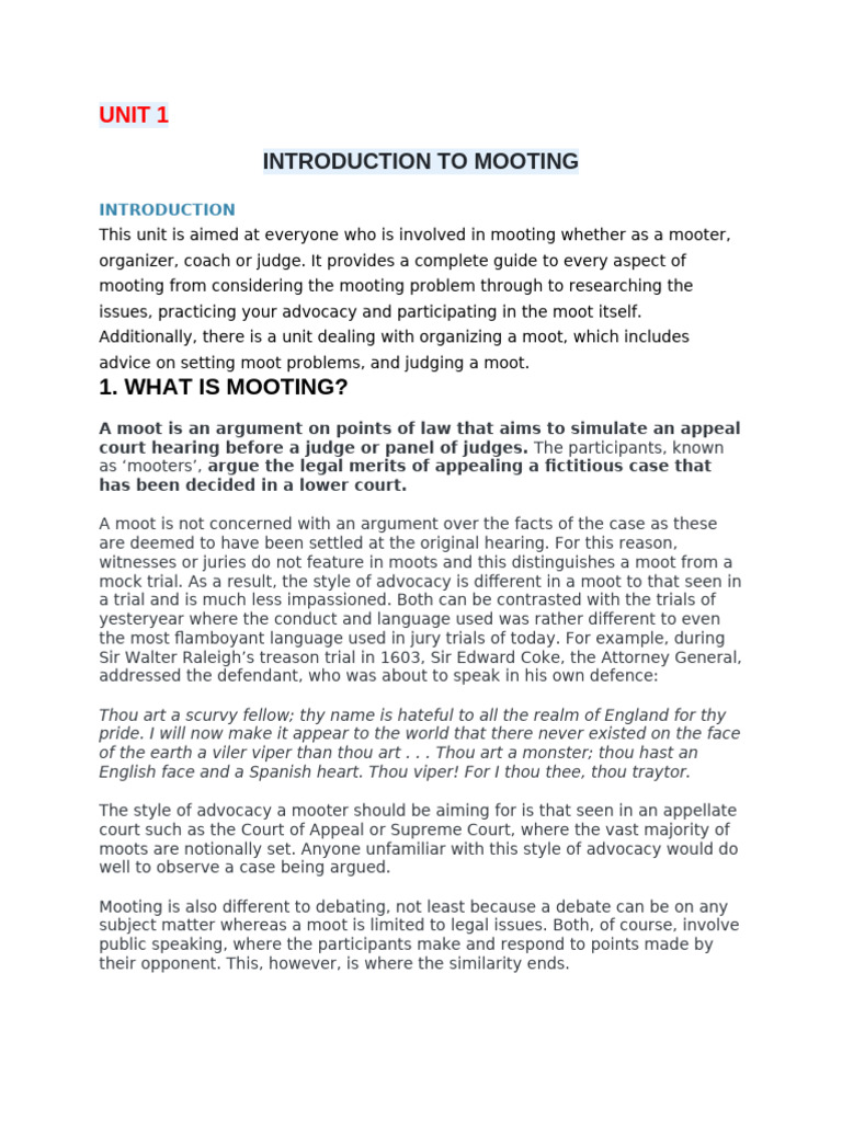 This unit is aimed at everyone who is involved in mooting whether as a mooter,