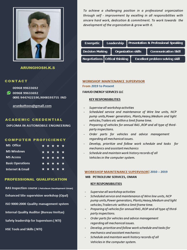 arunkuttoos@gmail.com - Supervise all workshop activities