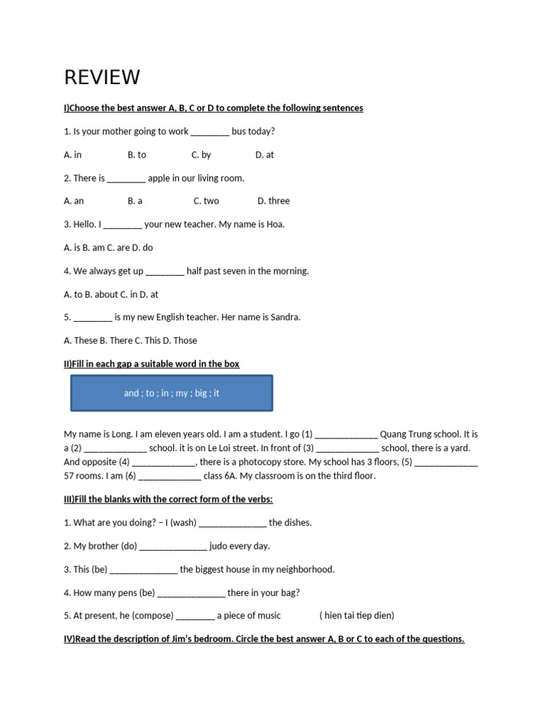 My name is Long. I am eleven years old. I am a student. I go (1) _____________ Quang Trung school. It is