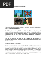 Operant Conditioning. Another type of learning, very similar to that discussed above, is called Operant Conditioning. The term "Operant" refers to how an organism operates on the environment, and hence, operant conditioning comes from how we respond to what is presented to us in our environment. It can be thought of as learning due to the natural consequences of our actions. Let's explain that a little further. The classic study of Operant Conditioning involved a cat who was placed in a box with only one way out; a specific area of the box had to be pressed in order for the door to open. The cat initially tries to get out of the box because freedom is reinforcing. In its attempt to escape, the area of the box is triggered and the door opens. The cat is now free. Once placed in the box again, the cat will naturally try to remember what it did to escape the previous time and will once again find the area to press. The more the cat is placed back in the box, the quicker it will press that area for its freedom. It has learned, through natural consequences, how to gain the reinforcing freedom. We learn this way every day in our lives. Imagine the last time you made a mistake; you most likely remember that mistake and do things differently when the situation comes up again. In that sense, youve learned to act differently based on the natural consequences of your previous actions. The same holds true for positive actions. If something you did results in a positive outcome, you are likely to do that same activity again. Observational Learning The social learning theory proposed by Albert BanduraIn his famous "Bobo doll" studies, Bandura demonstrated that children learn and imitate behaviors they have observed in other people. The children in Banduras studies observed an adult acting violently toward a Bobo doll. When the children were later allowed to play in a room with the Bobo doll, they began to imitate the aggressive actions they had previously observed. Bandura identified three basic models of observational learning: A live model, which involves an actual individual demonstrating or acting out a behavior. A verbal instructional model, which involves descriptions and explanations of a behavior. A symbolic model, which involves real or fictional characters displaying behaviors in books, films, television programs, or online media.