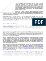 Classical and Operant Conditioning Classical Conditioning. One important type of learning, Classical Conditioning, was actually discovered accidentally by Ivan Pavlov (1849-1936). Pavlov was a Russian physiologist who discovered this phenomenon while doing research on digestion. His research was aimed at better understanding the digestive patterns in dogs. During his experiments, he would put meat powder in the mouths of dogs who had tubes inserted into various organs to measure bodily responses. What he discovered was that the dogs began to salivate before the meat powder was presented to them. Then, the dogs began to salivate as soon as the person feeding them would enter the room. He soon began to gain interest in this phenomenon and abandoned his digestion research in favor of his now famous Classical Conditioning study. Basically, the findings support the idea that we develop responses to certain stimuli that are not naturally occurring. When we touch a hot stove, our reflex pulls our hand back. It does this instinctually, no learning involved. It is merely a survival instinct. But why now do some people, after getting burned, pull their hands back even when the stove is not turned on? Pavlov discovered that we make associations which cause us to generalize our response to one stimuli onto a neutral stimuli it is paired with. In other words, hot burner = ouch, stove = burner, therefore, stove = ouch. Pavlov began pairing a bell sound with the meat powder and found that even when the meat powder was not presented, the dog would eventually begin to salivate after hearing the bell. Since the meat powder naturally results in salivation, these two variables are called the unconditioned stimulus (UCS) and the unconditioned response (UCR), respectively. The bell and salivation are not naturally occurring; the dog was conditioned to respond to the bell. Therefore, the bell is considered the conditioned stimulus (CS), and the salivation to the bell, the conditioned response (CR). Many of our behaviors today are shaped by the pairing of stimuli. Have you ever noticed that certain stimuli, such as the smell of a cologne or perfume, a certain song, a specific day of the year, results in fairly intense emotions? It's not that the smell or the song are the cause of the emotion, but rather what that smell or song has been paired with...perhaps an ex-boyfriend or ex-girlfriend, the death of a loved one, or maybe the day you met you current husband or wife. We make these associations all the time and often dont realize the power that these connections or pairings have on us. But, in fact, we have been classically conditioned.