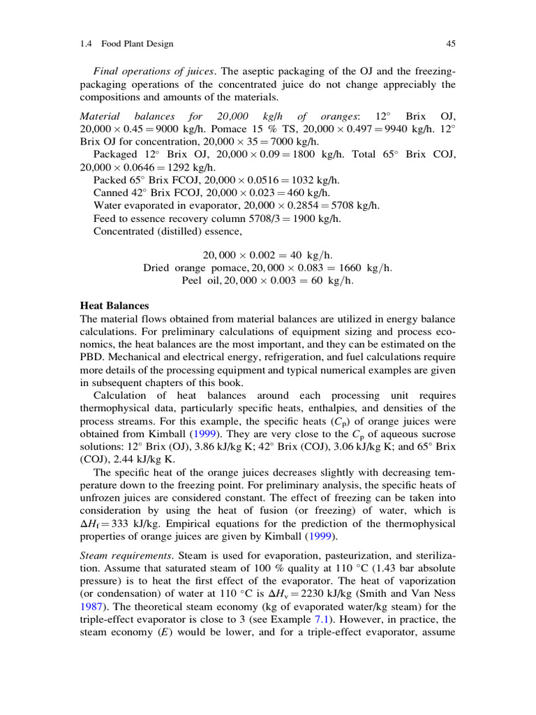 Brix OJ for concentration, 20,000 35 ¼ 7000 kg/h.