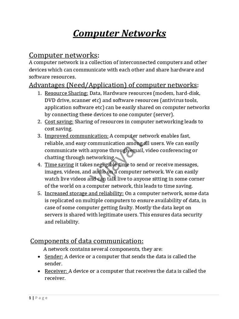 Computer Networks Class 12 Notes