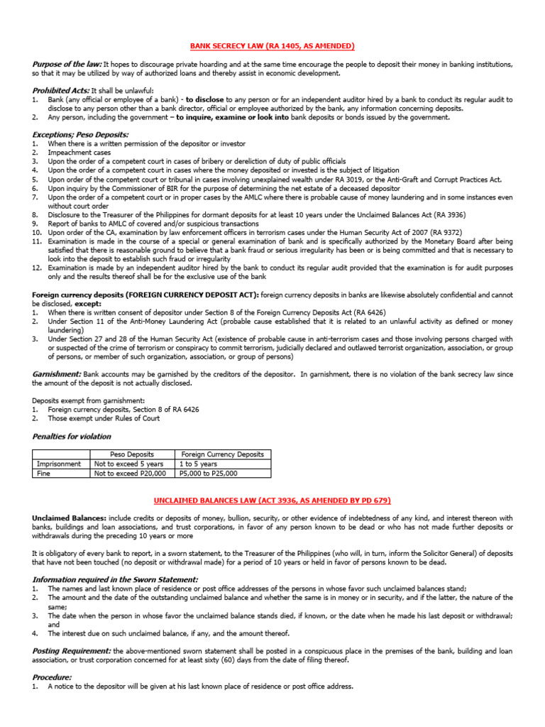 Splitting of Deposit – occurs whenever a deposit account with an outstanding balance more than P500,000 under the name of persons is broken