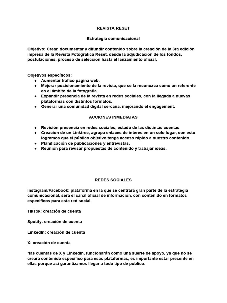 impresa de la Revista Fotográfica Reset, desde la adjudicación de los fondos,