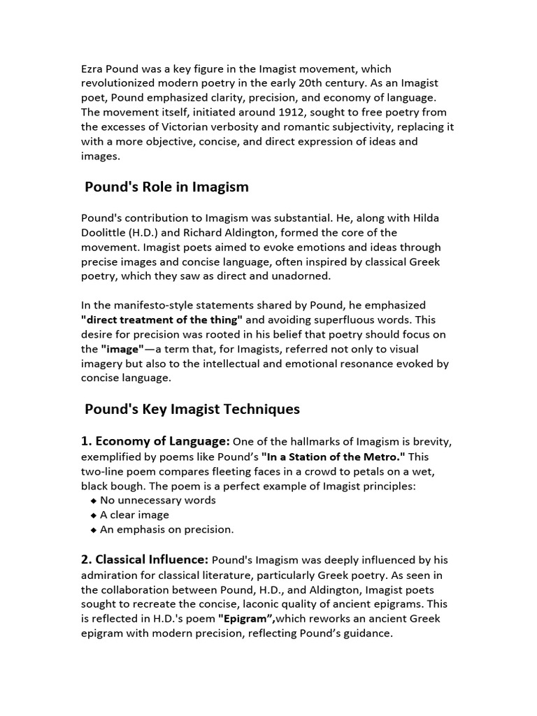 revolutionized modern poetry in the early 20th century. As an Imagist