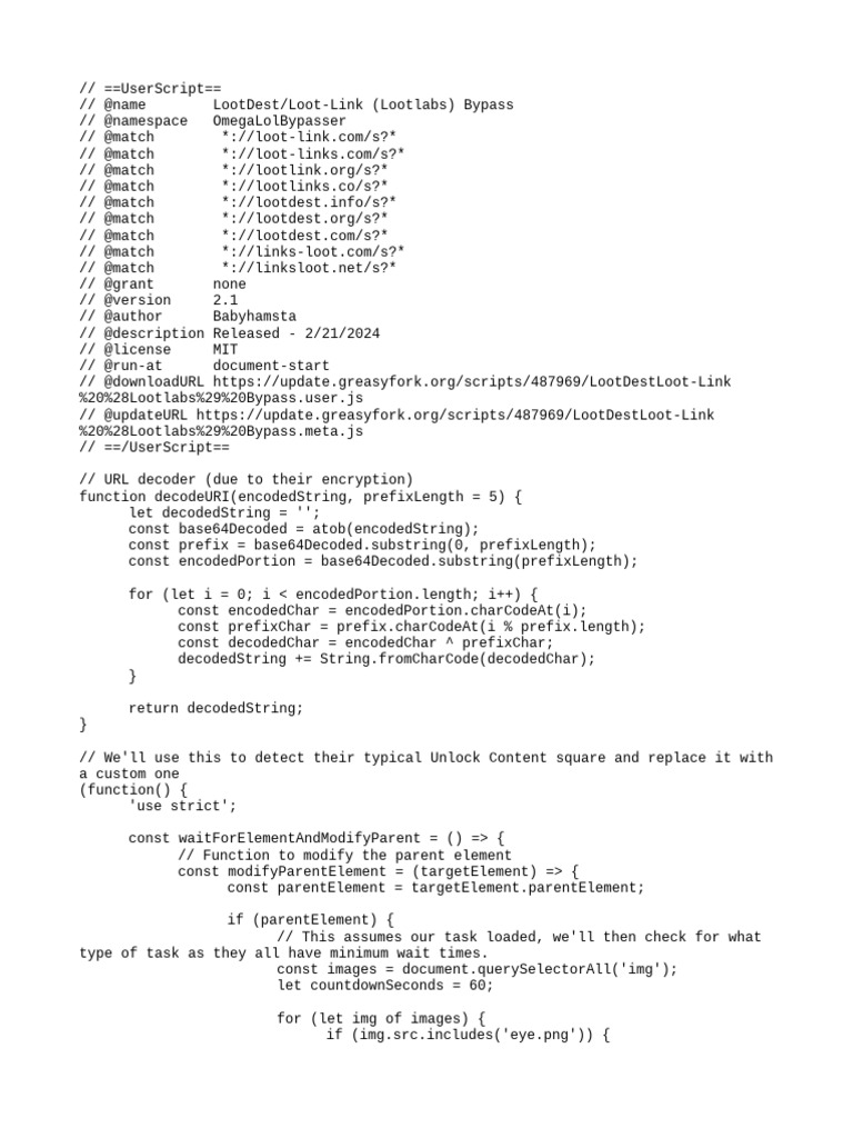 // @name LootDest/Loot-Link (Lootlabs) Bypass