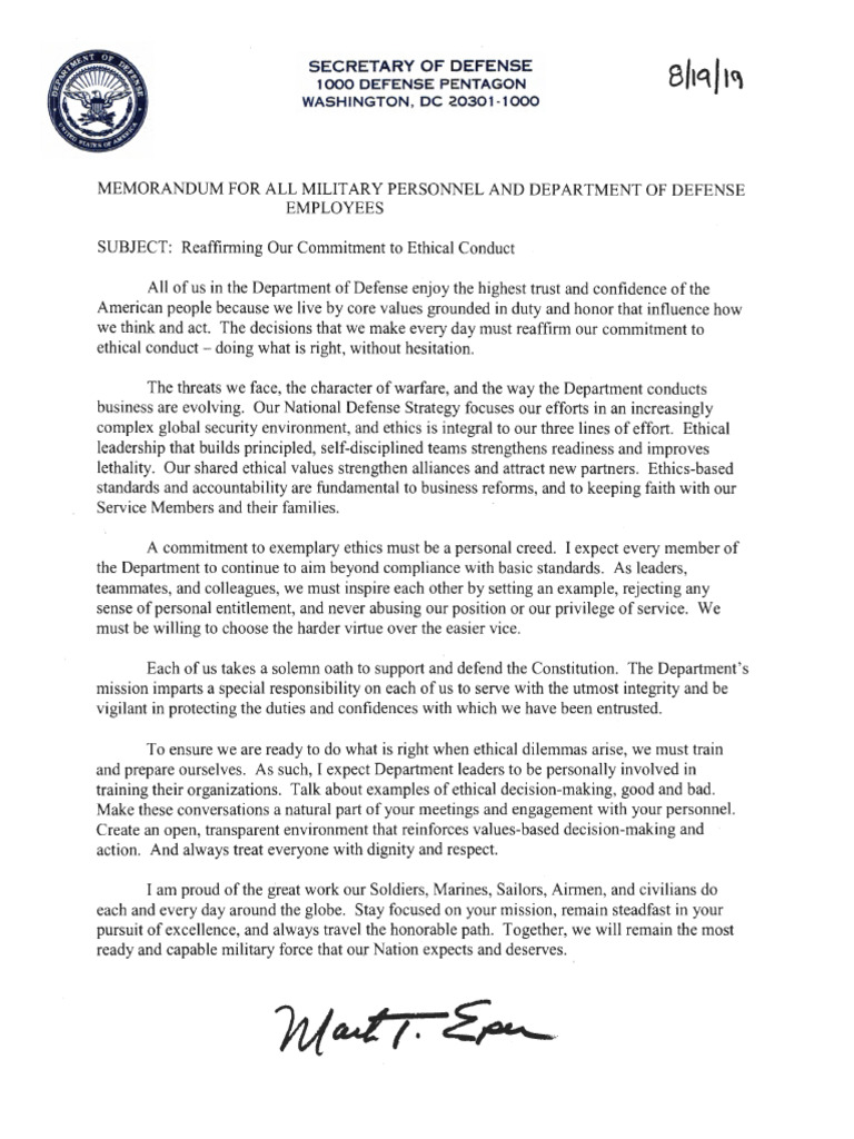 MEMORANDUM FOR ALL MILITARY PERSONNEL AND DEPARTMENT OF DEFENSE