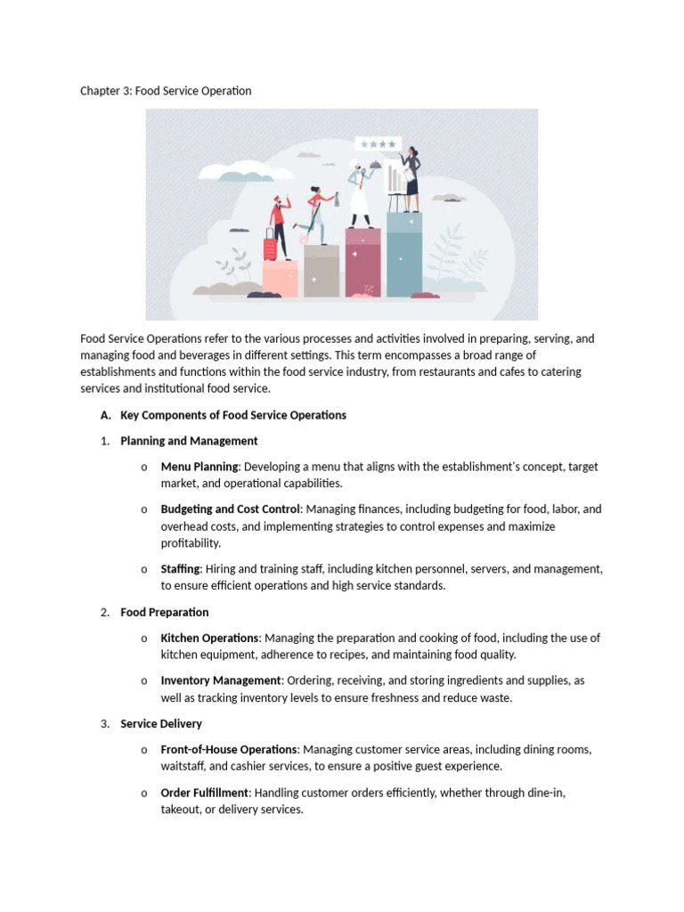 Food Service Operations refer to the various processes and activities involved in preparing, serving, and