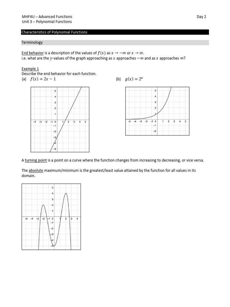 Unit 3 – Polynomial Functions