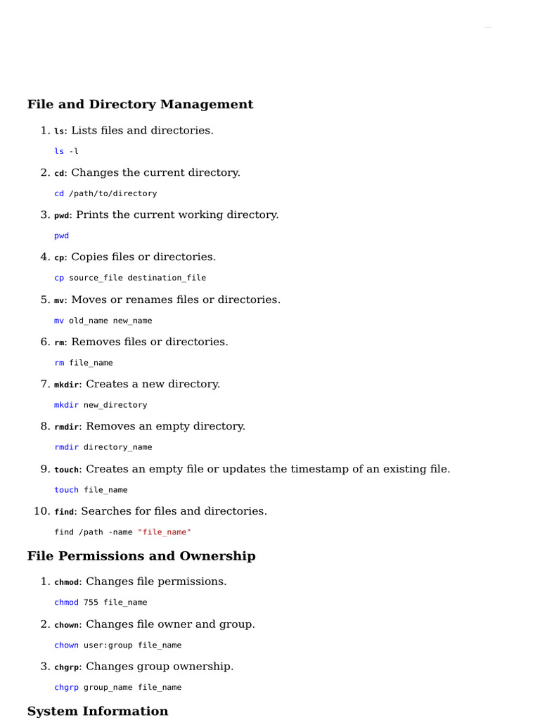1. ls: Lists files and directories.